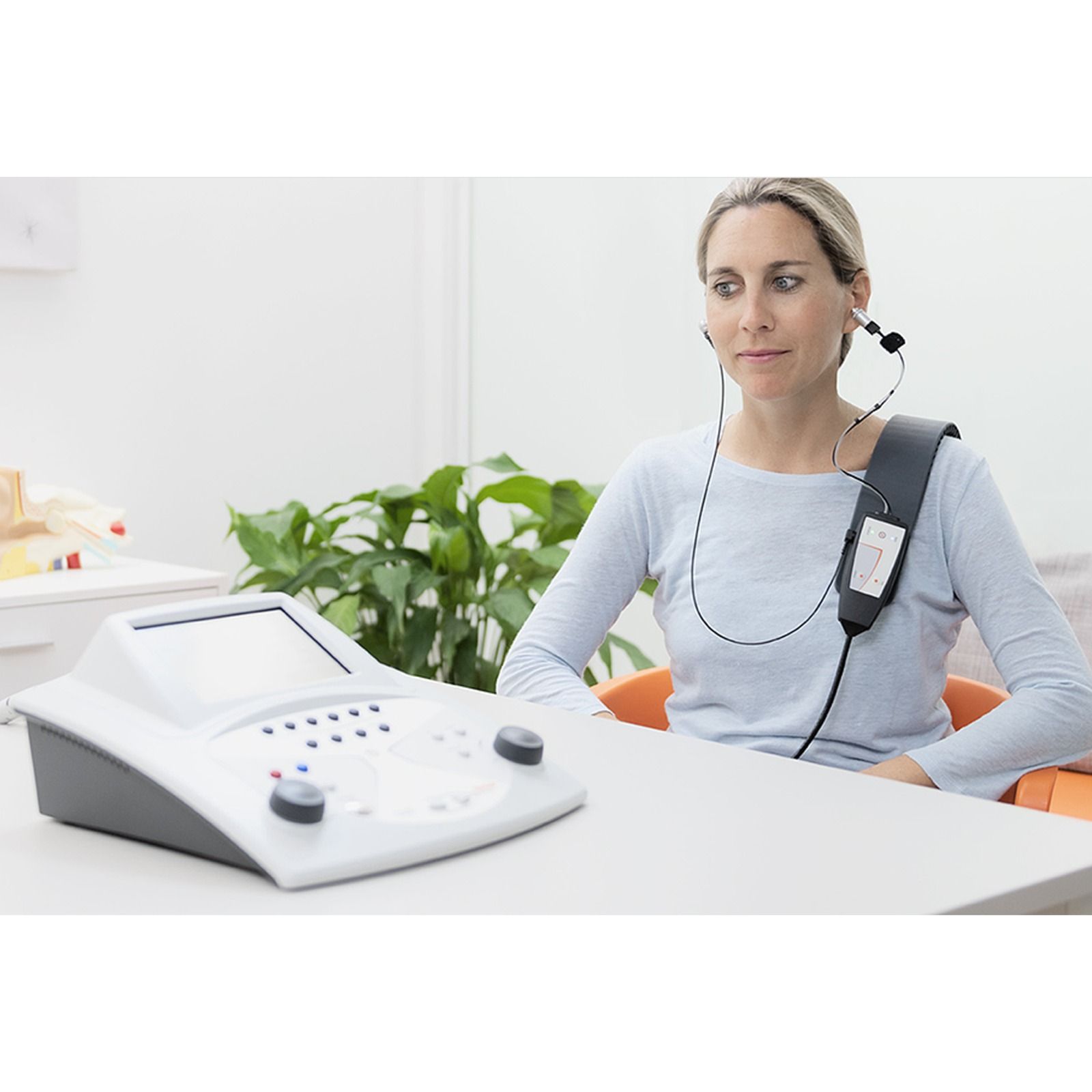 - اختبار يقيّم قدرة الشخص على سماع الأصوات المختلفة بدرجات متفاوتة من الشدة (الديسيبل)، والتردد (الهيرتز)